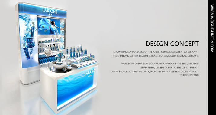 ·在前端展臺(tái)和形象背柜上,融入海水的美態(tài),不僅讓形象專柜在百貨、超市等環(huán)境中形成 鮮明的視覺焦點(diǎn),更貫徹了娜蘭詩(shī)海洋科技的產(chǎn)品特征。