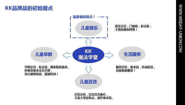 剔除太難啃的生活服務(wù)與兒童百貨細(xì)分領(lǐng)域,兒童娛樂+兒童早教,不但吻合智高起步階段“文具+玩具”的定位初衷,同時(shí)能完整囊括客戶需求,給KK魔法學(xué)堂的未來塑造了更多的可能性,渠道的選點(diǎn)既可落戶在精彩紛呈的游樂項(xiàng)目周邊,也可選擇濃烈教育氛圍的早教基地旁,“樂+教”二大領(lǐng)域理所當(dāng)然成為智高必爭之地。