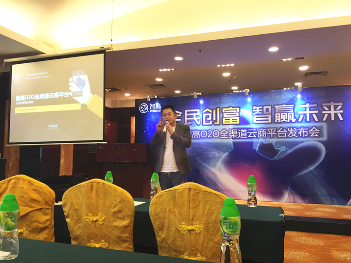 WUI維濤優(yōu)聯(lián)互聯(lián)網(wǎng)科技有限公司總經(jīng)理劉楊志先生(智高O2O代運營合作伙伴的代表)發(fā)表了主題演講,為與會嘉賓推介智高O2O云商平臺的優(yōu)勢、功能、盈利模式、以及未來3年的運營規(guī)劃。