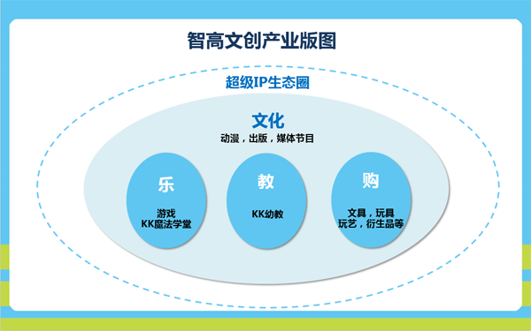 智高超級IP生態(tài)圈,是智高集團打造的兒童產業(yè)復合盈利生態(tài)系統(tǒng),是以IP為核心的、將各產業(yè)板塊連接滲透、盈利倍放的商業(yè)模式。KK幼教的誕生,標志著超級IP生態(tài)圈版圖構建完成。